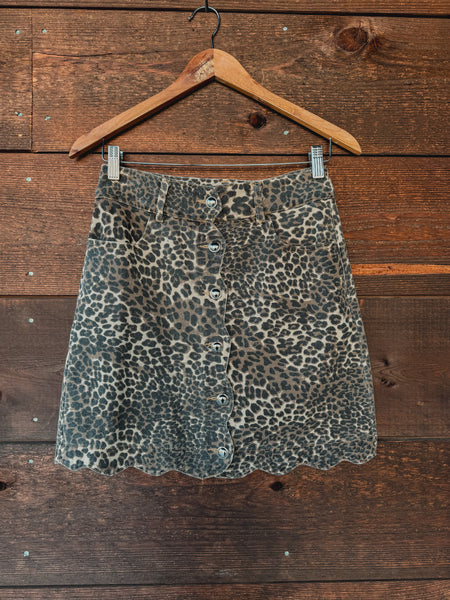 Add some wild fun to your wardrobe with the Lucy Leopard Scalloped Button Skirt! Made from 100% soft cotton, this mini skirt features a cute scalloped hem and playful button-up front. Perfect for turning heads and showing off your bold style with a touch of flirty charm.