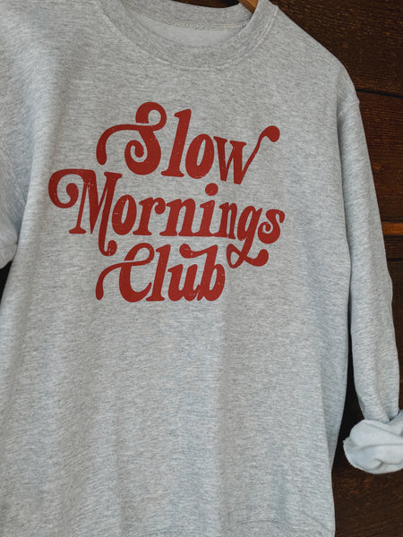 Ease into your day with the Slow Morning Club Sweatshirt, your new go-to for laid-back comfort and effortless style.