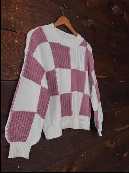Soft, warm, and effortlessly charming — the Winter Rose Checkered Sweater pairs a dusty rose and cream checker pattern with cozy ribbed texture for the perfect winter-ready look. Featuring a relaxed silhouette, dropped shoulders, and plush knit feel, it’s the kind of sweater you want to live in all season long. Dress it up with denim or keep it casual with leggings — either way, it’s a standout piece.